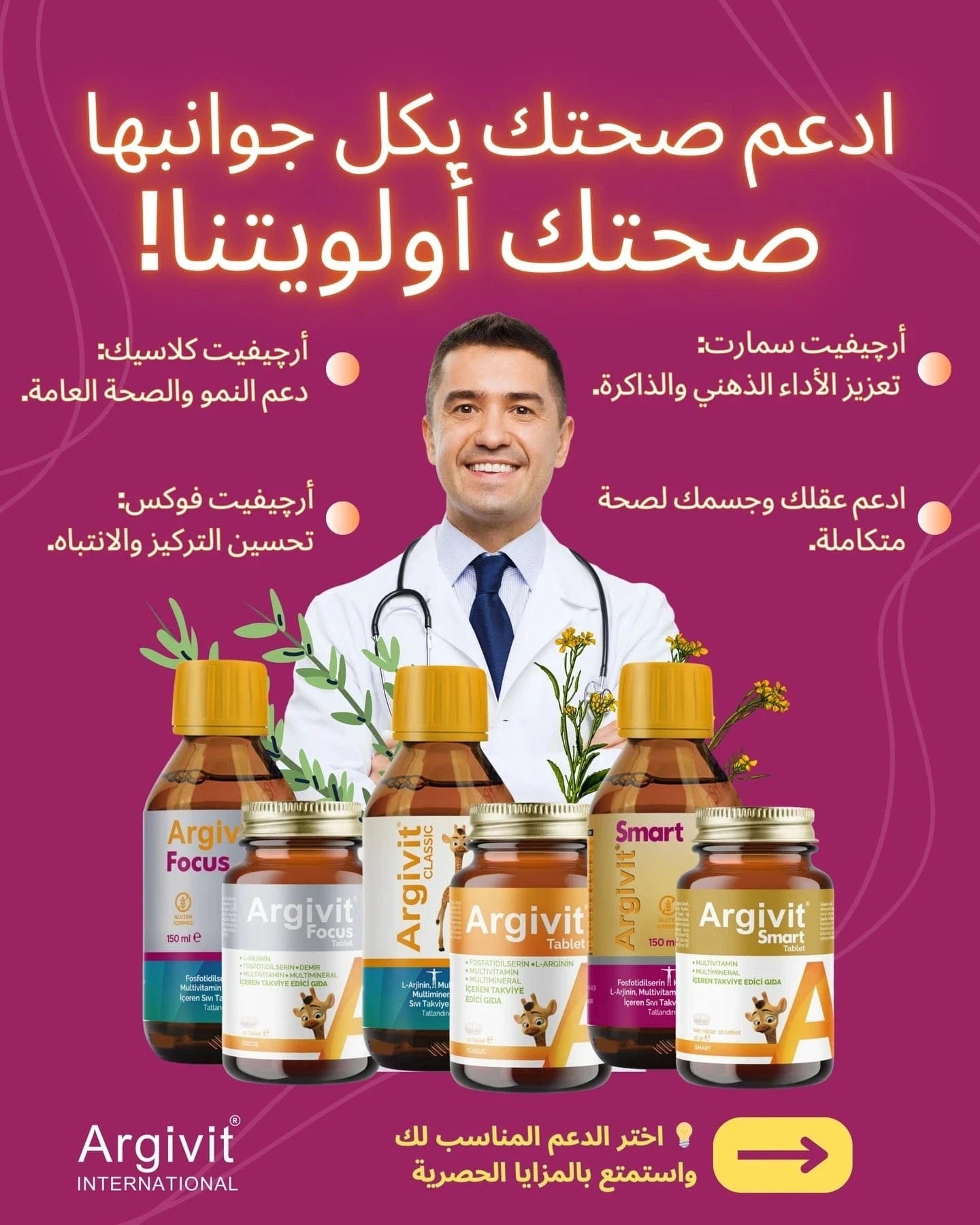 اكتشف أرجيفيت: علامة تجارية موثوقة تقدم فيتامينات ومكملات غذائية معتمدة حلال لدعم النمو والمناعة والطاقة والتركيز. من الدعم اليومي باستخدام كلاسيك إلى تركيبات سمارت وفوكس لصحة الدماغ، تقدم أرجيفيت حلولاً عالية الجودة لجميع مراحل الحياة.