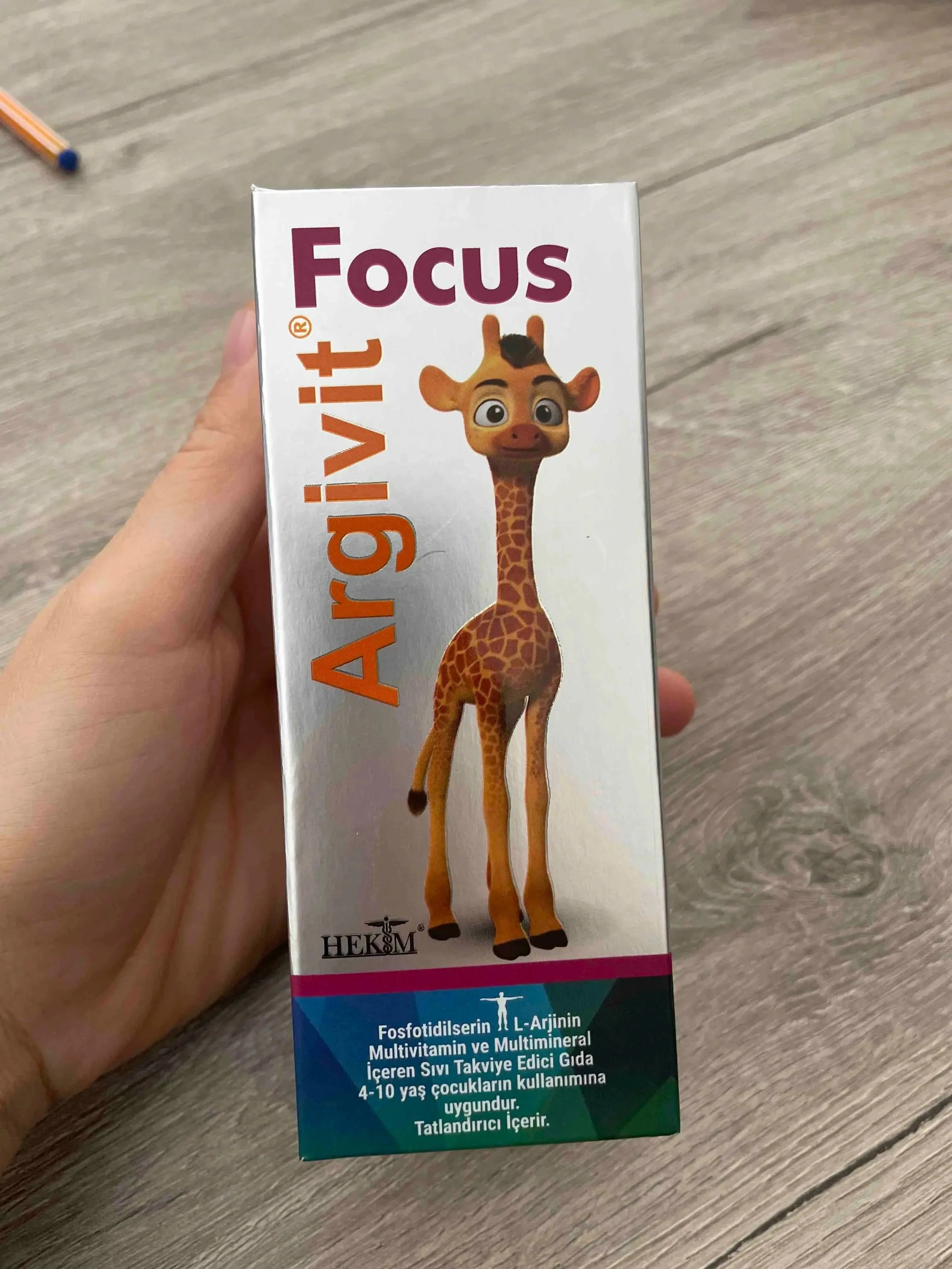 Een kindvriendelijke siroop met vitamines en mineralen ter bevordering van aandacht en leren.